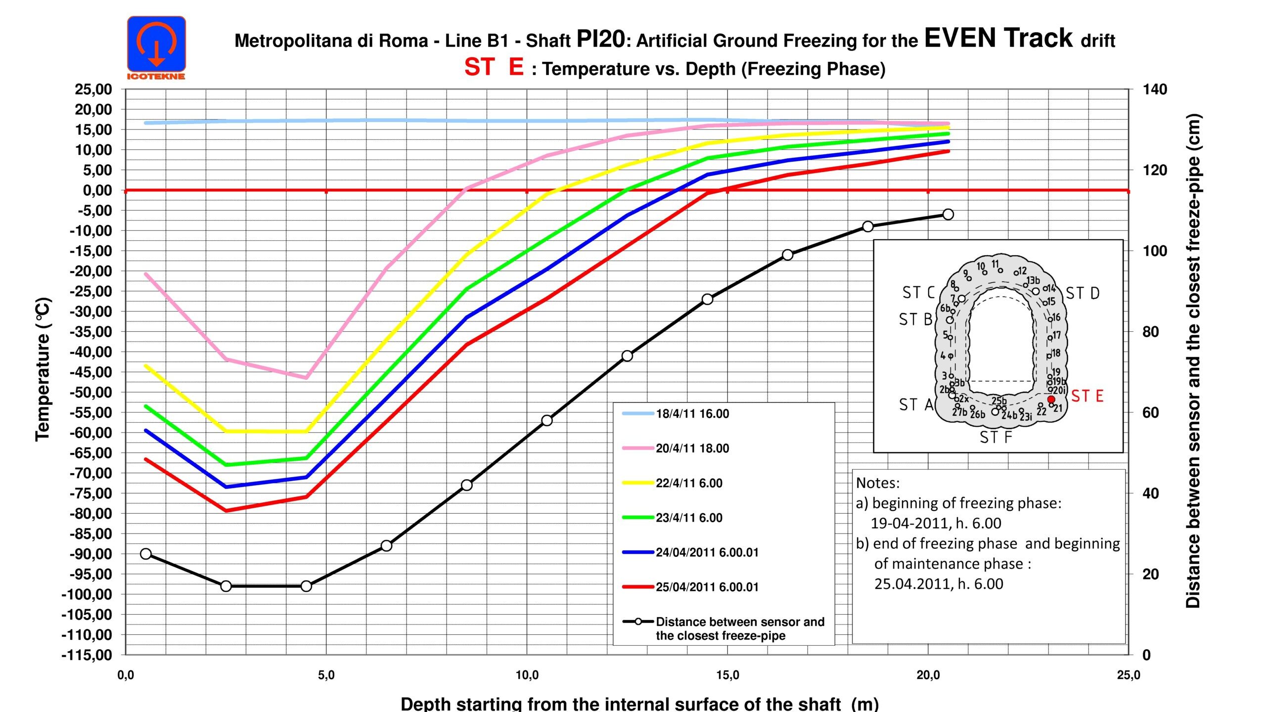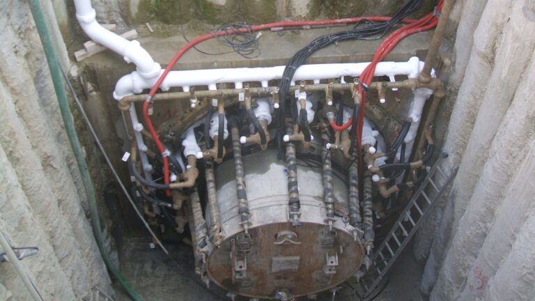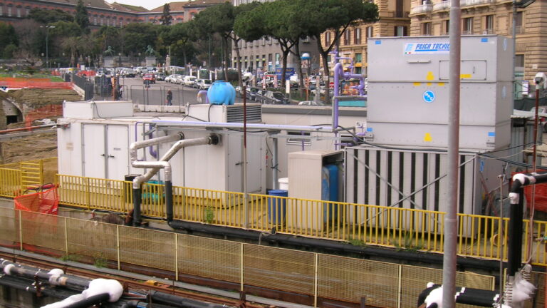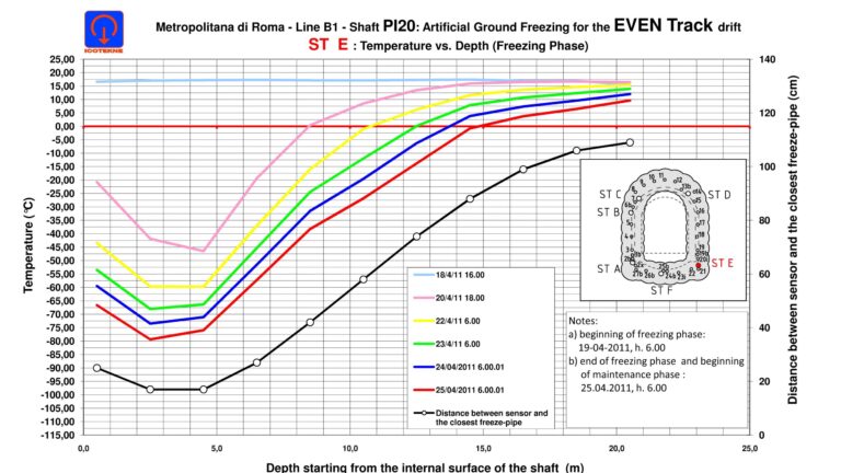 – Con il congelamento del terreno si ottiene un miglioramento temporaneo delle caratteristiche dei terreni, li dove altre tecnologie di consolidamento non sono applicabili. Il congelamento può essere fatto o con Azoto liquido (ciclo aperto) introdotto nel terreno a -196 C e disperso poi in atmosfera; o con Salamoia (ciclo chiuso) immessa nel terreno tra i -28 C ed i -35 C