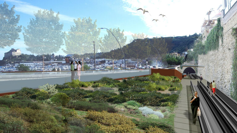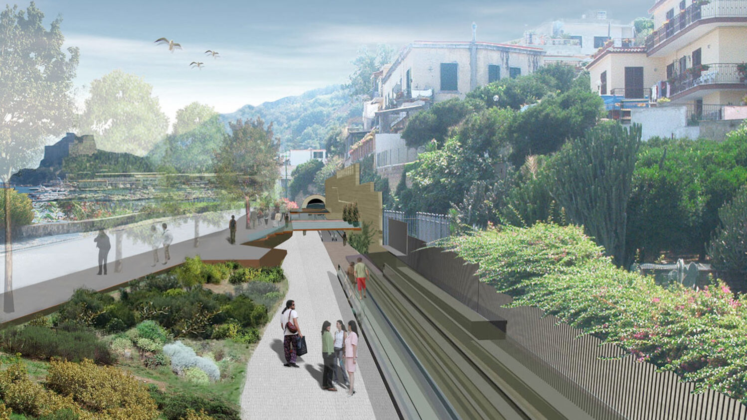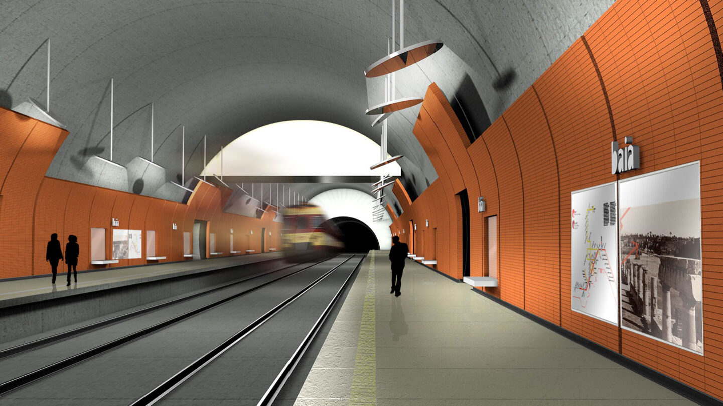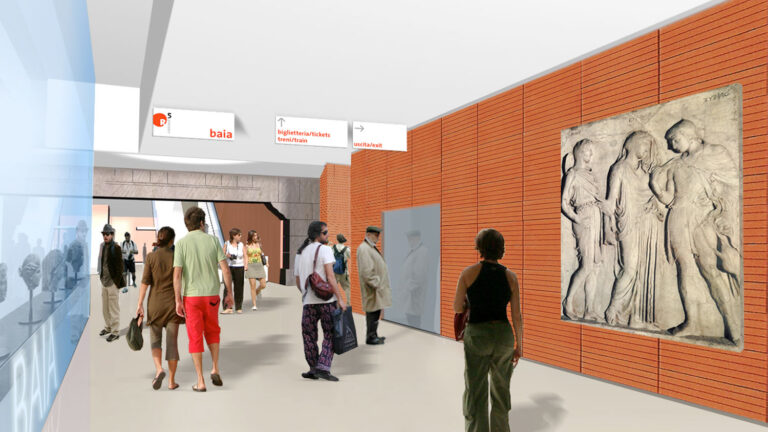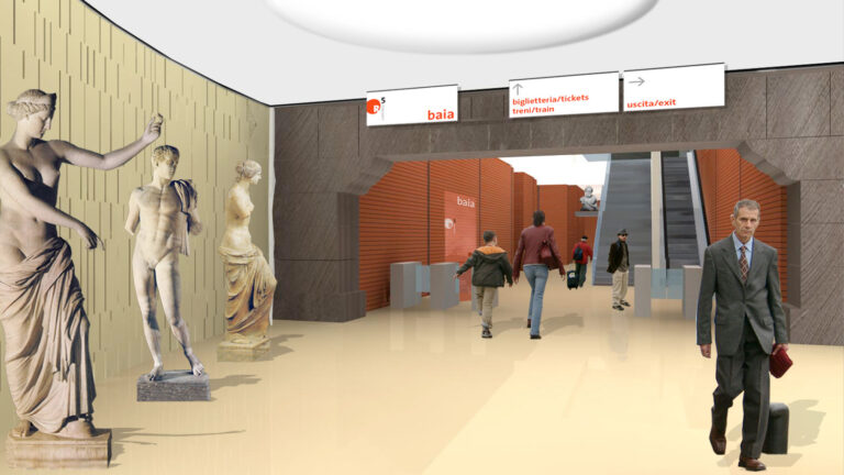 Nell’ottica di rifunzionalizzazione dell’esercizio ferroviario e nel nuovo modo di interpretare le stazioni nel contesto urbano, il progetto prevede il completamento e la riqualificazione della stazione di Baia e delle aree circostanti con particolare attenzione al recupero di un’area dismessa del vecchio tracciato della Ferrovia Cumana attraverso la realizzazione di un collegamento meccanizzato tra l’area della vecchia Stazione e la piazza De Gasperi, con i connotati di parco urbano.